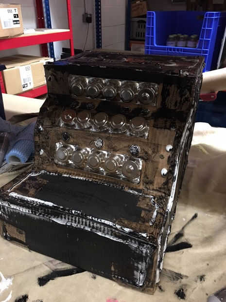 En el detalle, botones, dulces etc, aplique suavemente la pintura. Yo quería interno para mostrar a través de los acabado metálicos de la choc, así pasó ligeramente con negro. En las secciones de sellador que i había servicio, era suave con el negro como quisiera esta grabación en relieve para ser amarillo brillante más adelante. Trate de pintar todas las piezas, incluso la parte inferior, en caso la caja obtiene golpeó en el escenario y su base se ve!