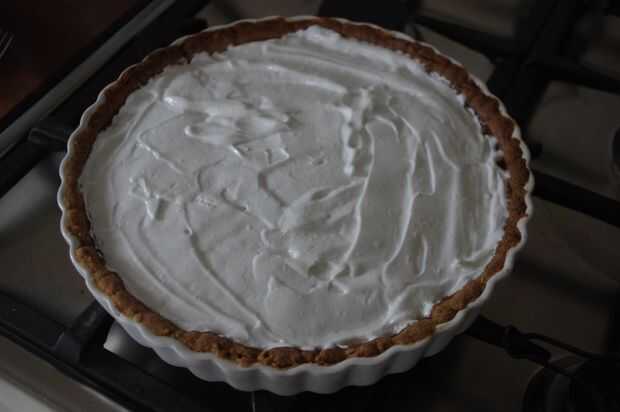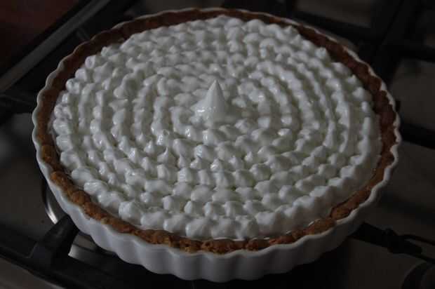 Después decorar la tarta con el merengue, poner de nuevo en el horno durante unos minutos. El merengue se oro y le dará un poquito de corteza a la parte superior de la torta. Tenga cuidado de no quemar el merengue, el azúcar se mantenga ardiendo después de haber seguido fuera del horno.
