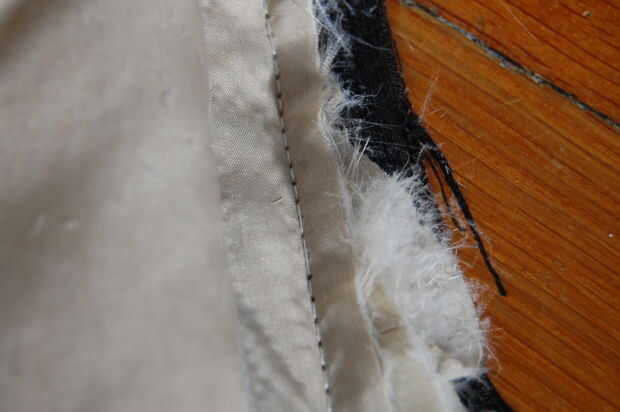 Voltear a la tela alrededor de lado derecho hacia fuera y se esconde la costura que acaba de hacer, como se muestra en la última foto de este paso.