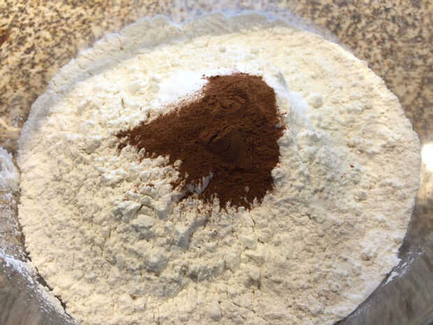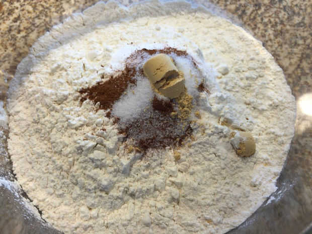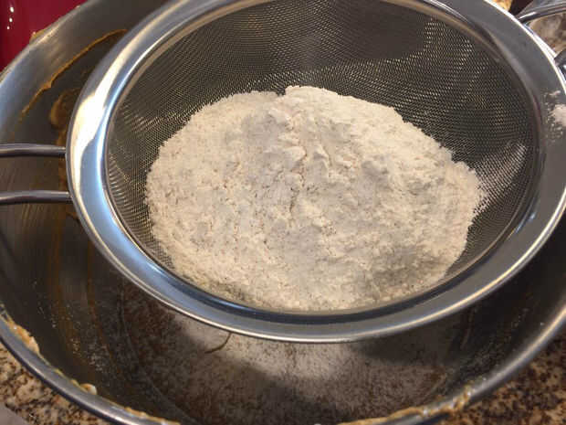 En otro bol tamizar la harina. A la harina en un tazón, agregar bicarbonato de sodio, sal, canela y jengibre mezcla entonces, uniformemente combinar harina con especias.