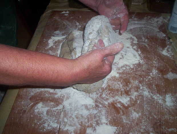 Nota: El método de amasado masa: colocar la masa sobre una tabla espolvoreada con harina pan. Doblar la masa sobre sí misma y haciendo un cuarto de vuelta cada vez seguir doblándola hasta tener una masa firme.