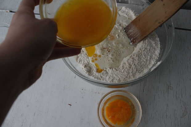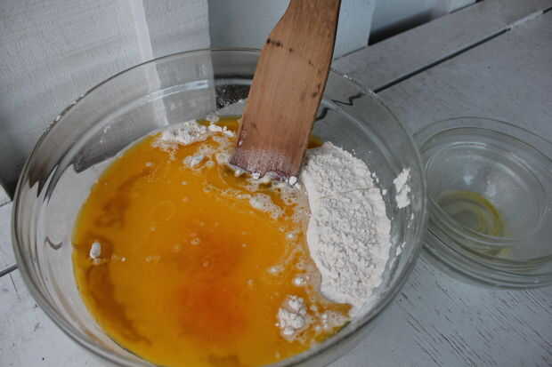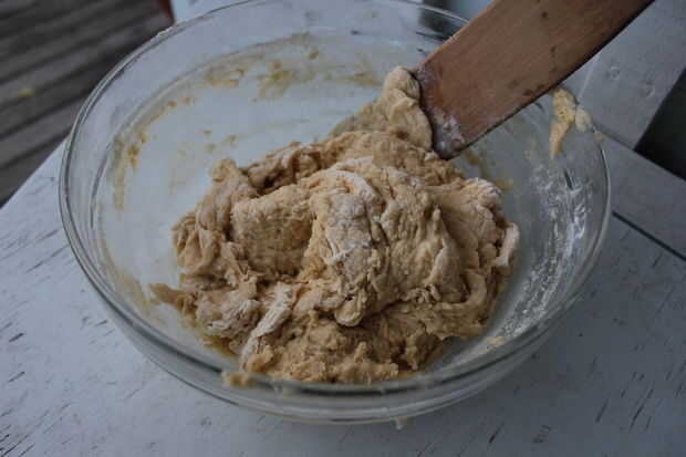Masa debe ser lo suficientemente espesa para rodar hacia fuera. Si por alguna razón su masa es demasiado pegajosa, añadir un poco más de harina y mezclar lo suficiente como para combinarlo.