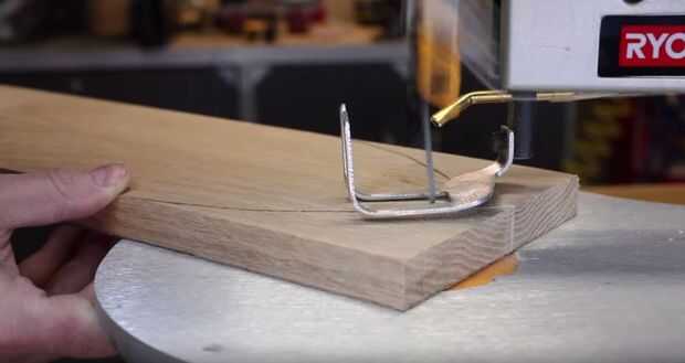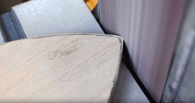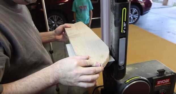 Corte a las afueras de la línea por aproximadamente 1/32". De esta manera puede utilizar una lijadora para llevarla hasta la línea de un borde perfectamente liso. Utilicé mi lijadora de banda para hacer esto, pero un tramo de lija de grano 80 a un bloque de madera de madera de desecho es todo lo que necesitas para.