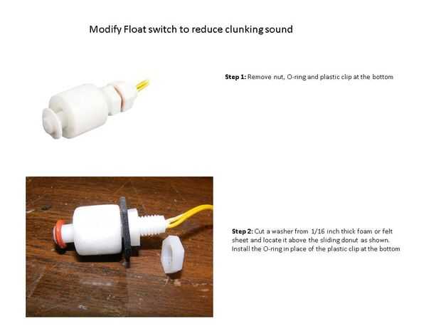 c) porque el flotador interruptor "donut" un servicio de traslado ida y vuelta como la bola 8 se inclina hacia abajo al lado derecho hacia arriba y viceversa, es deseable para reducir el ruido mover. Es lo que hace esta modificación. La foto describe la modificación...