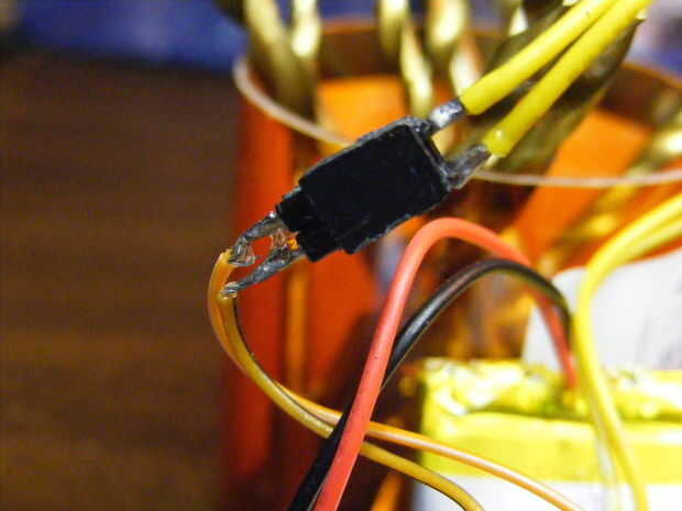 c) el interruptor de flotador, los cables necesitan cortar hasta 3 pulgadas de largo, luego soldar un conector hembra 2 pines a los extremos del cable. Compruebe que el conector puede pasar libremente a través del agujero de 5/16 perforado en la parte superior del tapón de PVC - si no, solo limar los lados del conector un poco.
