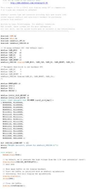 Después de descargar la biblioteca de Adafruit SSD1306, abrir el ejemplo que corresponde a su pantalla OLED específica. En nuestro caso, hemos utilizado la pantalla de 128 x 32 SPI.