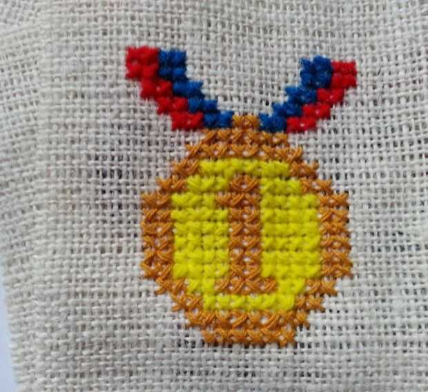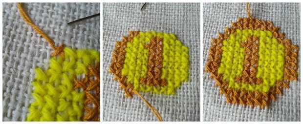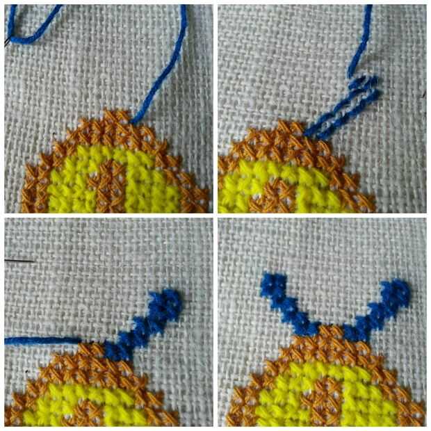 Para las cintas empecé la cruz puntada desde la parte superior de la medalla (donde une con la cinta de la medalla), didi medio puntadas hacia arriba y se volvieron hacia abajo haciendo puntadas cruzadas (véase el cuadro 4 de este paso).