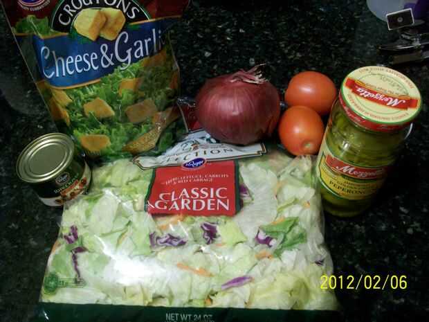 Ensalada Mix-la clase barata con repollo, lechuga de iceburg y zanahorias, tengo la bolsa más grande posible.