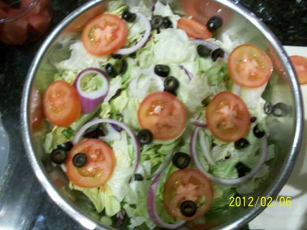 Escurrir las aceitunas y espolvorear por encima de la ensalada
