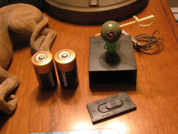 Entonces utilicé epoxi para asegurar a Olive Man a la batería.