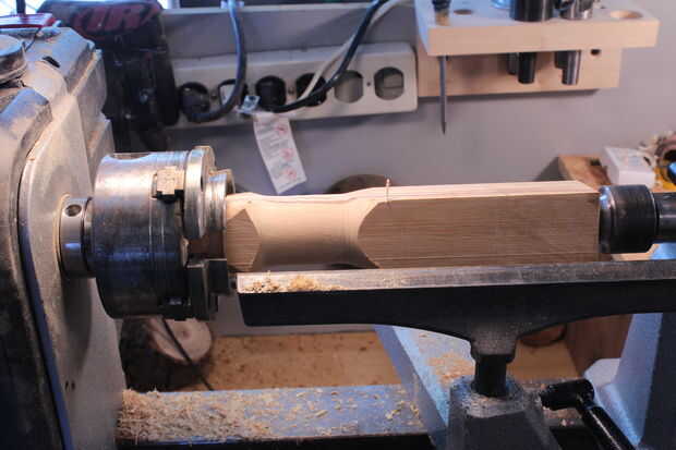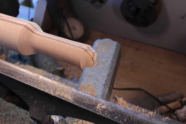 Girar áspero cerca de lo que quiere el diámetro acabado del tazón de fuente, y luego fino hacia fuera el extremo del tallo de la tubería. Soy mala para no medir mientras que da vuelta, globo ocular dimensiones y utilizar un calibrador de fibonacci todo el tiempo para los proyectos. Por lo tanto, lo siento por no tener dimensiones para usted. Para mí, esta es la mejor parte de torneado (parada cuando parece buena) ;)