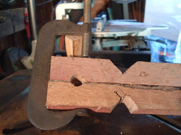 A continuación sujeta otro par de piezas de madera de desecho y había perforado con una