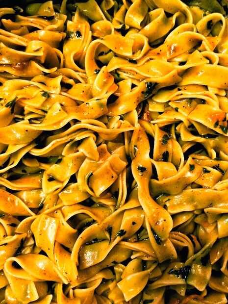 * Para hacer fideos, en una olla grande, añada la mantequilla y el jugo restante. Cuando la carne jugos llegan a hervir, añadir 2 cucharadas de perejil y 3 tazas de fideos de huevo seca. No habrá suficiente jugo para cubrir los fideos y esta bien, porque desea que los fideos para absorber la mayor parte de los jugos de la carne. Tapar y cocinar hasta que los fideos estén al dente, revolviendo de vez en cuando para no secan los fideos en la parte superior.