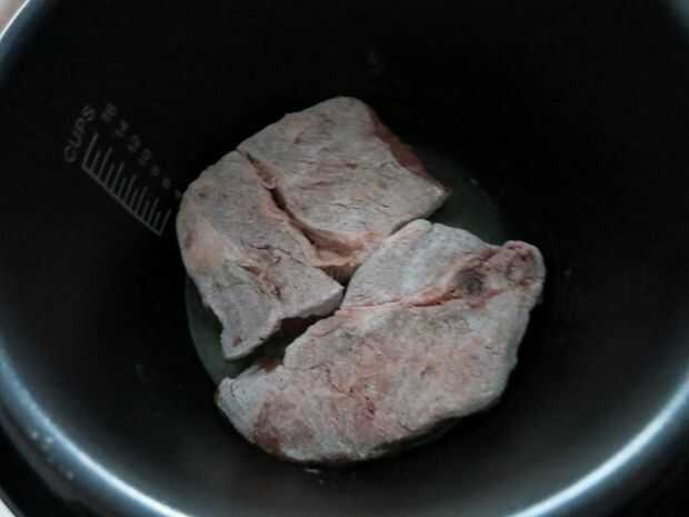 Con la tapa de la olla a presión apagado, caliente aceite en lo alto (o marrón) hasta que chisporrotea. Carne enharinada lugar en la cocina y marrón por todos lados (lo hice en dos tandas, agregar la carne de la primera tanda después de que el lote 2 se dore).