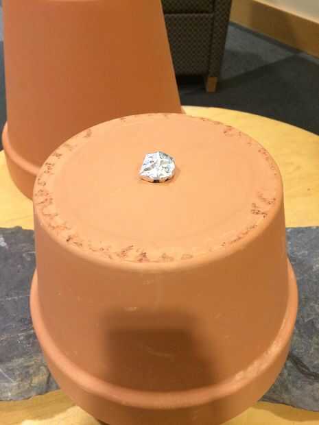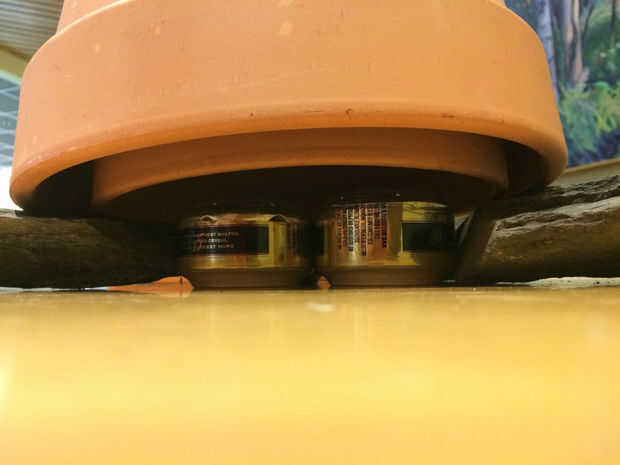 • Coloque la olla de arcilla de 10 pulgadas encima de la maceta de 8 pulgadas centralizada alrededor de las estufas pueden.