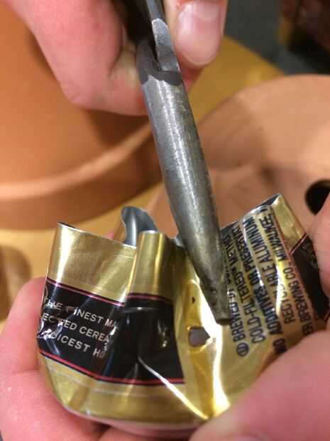 • Tomar puede A y utilizando los alicates de punta delgada, doblar el metal hacia adentro en cada orificio alrededor del lado del poder A.