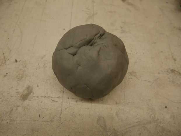 Romper un trozo de arcilla del tamaño de un pomelo.