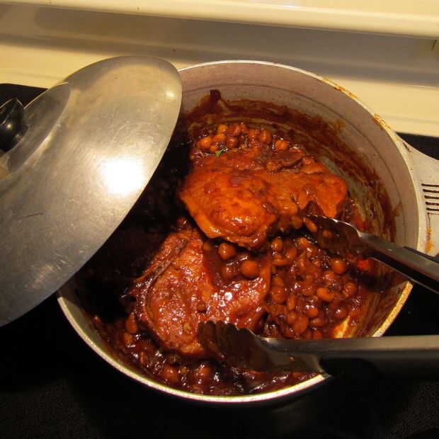 Frijoles y carne de cerdo del horno holandés