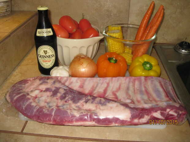 -Costillas - utilicé una losa de costillas de cerdo. Cortar en barbero y costillas individuales el exceso de grasa.