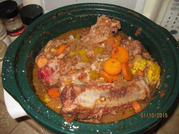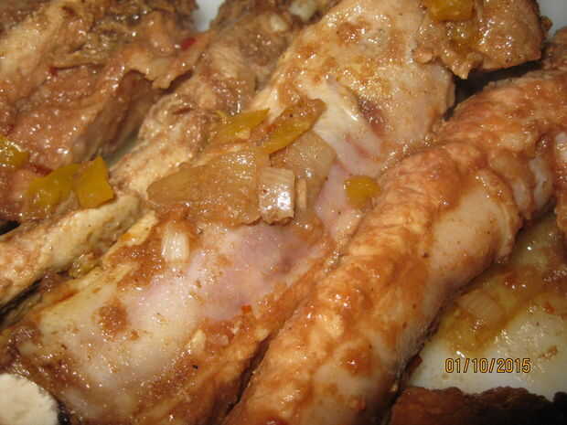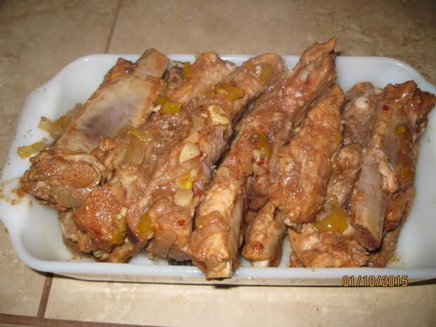 No cocine las costillas durante más de 6-7 horas máximo. Si se cocinan demasiado puede obtener fibrosa y resistente. Cuando hayas terminados los ponen en una bandeja y separar las verduras. Utilice su cuchara a cucharada cebollas, pimientos y el ajo desde el fondo de la olla. Repartidas las costillas en la bandeja y servir. Disfrutar de las costillas más tiernas que has comido.