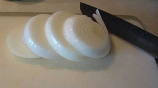 Cortar la cebolla dulce en rebanadas de media pulgada.
