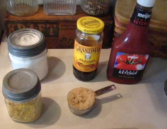 Agregar líquido: Añadir 1/3 taza de melaza, 1/3 taza de azúcar morena, mostaza seca 1 cucharadita, 1/2 cucharadita de pimienta y alguna salsa de tomate... Alrededor de un cuarto de una taza. Poner esto a hervir y dejar cocer durante unos 5 minutos.