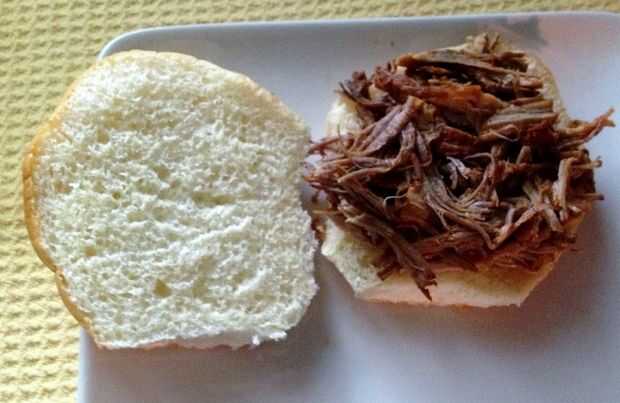 Servir carne de cerdo deshebrada en los bollos con la salsa restante.