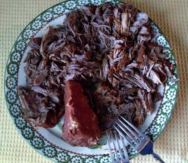 Mezcle 1 taza de salsa en la carne de cerdo deshebrada, luego agregue la salsa extra al gusto.