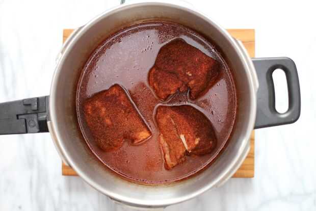 Una vez liberada la presión, abra la tapa y saque la carne de cerdo. ¿Está empezando a desmoronarse? Si es así, estás en buena forma! Si no, la tapa en y llevarlo a presión otra vez y cocer durante cinco minutos.