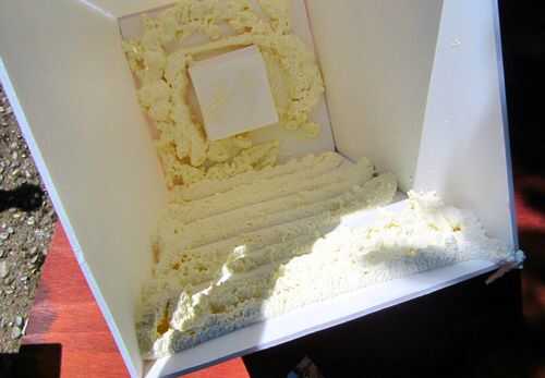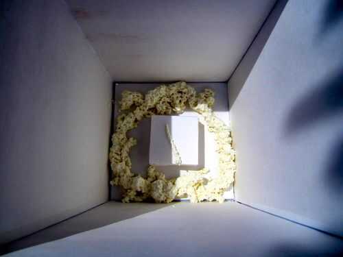 Rocíe algunos en torno a la forma del agujero de drenaje, luego colocar la forma de caja trapezoidal (realmente llamado un "frustrum") que, dentro de la mayor forma de frustrum.