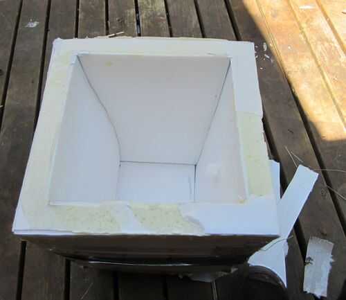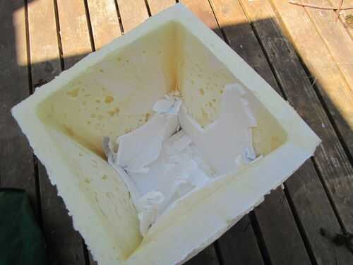 Después de dos o tres días, pasé cerca de una hora el molde de cartón pluma de la forma acabada de rasgado.  Rompí un clavo o dos así.