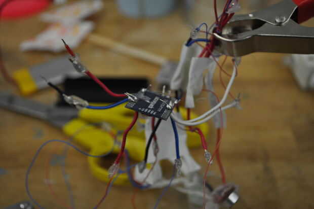En este punto el circuito será suficientemente ligero como para ser levantado por el globo o simplemente el peso adecuado para mantenerlo en equilibrio. Si el circuito es demasiado ligero, ajuste con una pequeña cantidad de arcilla.