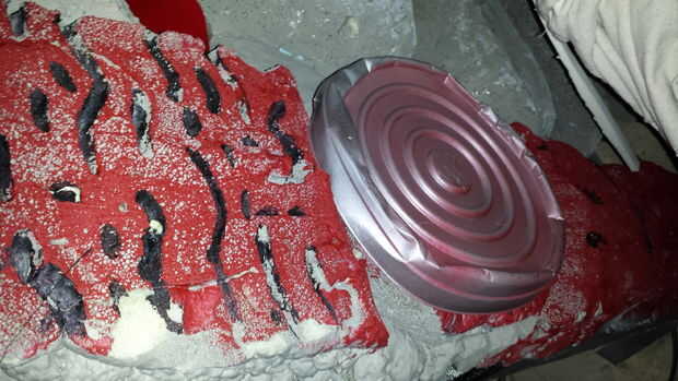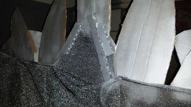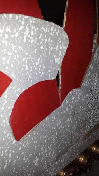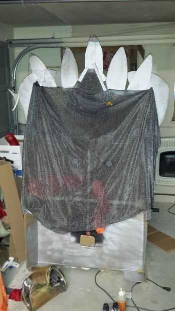 Así que instalamos llave luces detrás de opacos ojos rojos plástico delgadas hechas de placas de plástico en la tienda de dólar. Los soportes de hombro son L soportes para estantes, empujados en el grueso de la espuma y gorila pegada en su lugar. tuerca y pernos fueron utilizados para fijar la correa de nylon que va sobre los hombros de apoyo.