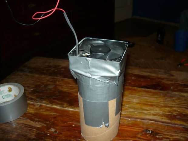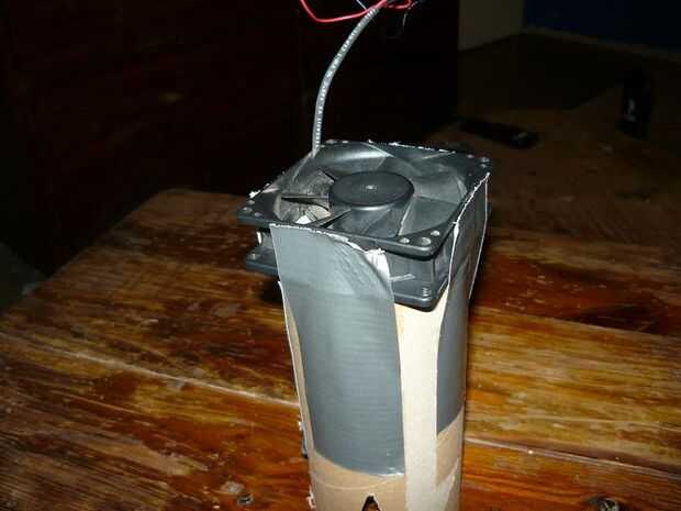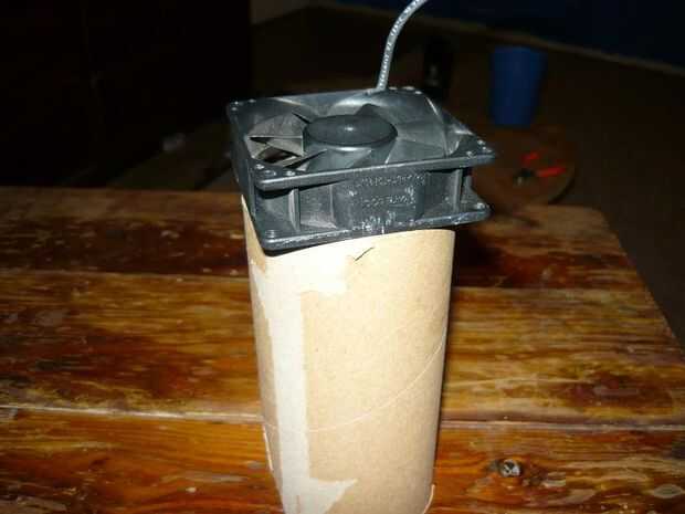 Se el ventilador de la CPU y colocarlo en la parte superior del tubo donde va el flujo de aire en el tubo y fíjelo por medio de cinta adhesiva. Bastante, ¿no es? jajaja