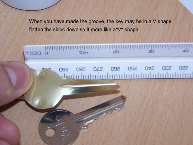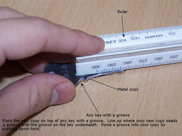 Tomar otra tecla con un surco en ella, no tiene que ser la original, vamos a utilizar la ranura en él para crear el surco en la copia.