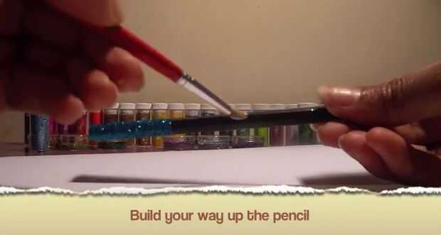 Construir su camino hasta el lápiz y repita los pasos uno y dos, añadiendo que más pegamento en diferentes tonalidades del color elegidos, o cualquier color de su elección.