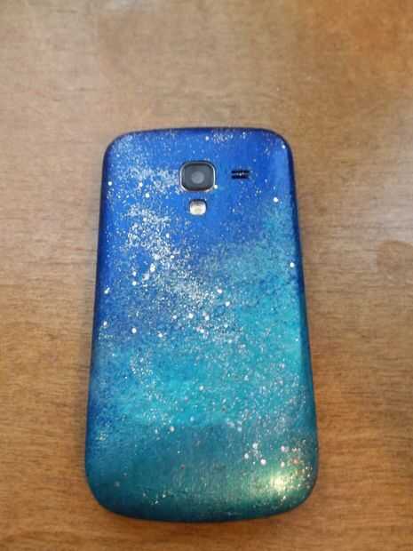 Hace unos años encontré una cubierta que me gustó, pero fue veinte o treinta dólares. Soy un tightwad, así que me encontré con esmalte de uñas que parecía similar a la calidad holográfica de la cubierta y pintado el teléfono con ella.