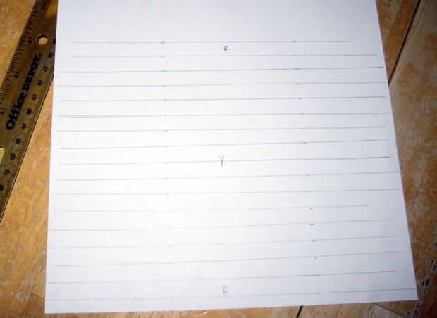 Usted puede utilizar papel rayado si quieres, no porque no pudimos encontrar ninguna facilidad, por lo que dibujamos espacios para tantas secciones como estábamos teñido (16 Si te acuerdas del último paso). Hay numerosas maneras de hacer esto, pero soy perezoso cuando se trata de matemáticas y estaba un dibujante hace varios años, así que encontrar que hacer matemáticas visualmente ayuda a mantenerme precisa.