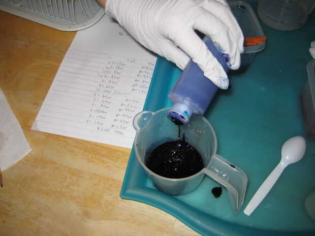 - Mediante el gráfico generado en el paso 2, agregue el número apropiado a cucharaditas de colorante a su botella de enjuague.