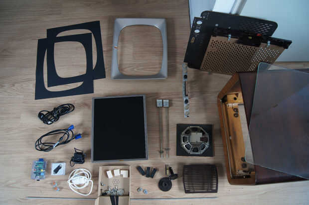 Un monitor regular en este lugar hip no sería correcto, así que pensé en poner una pantalla dentro de un televisor vintage en su lugar. Construcción fue un increíblemente divertido proyecto. Realmente es una estructura simple y relativamente barata, con efecto máximo. Fue una idea para un trabajo de televisión en el comedor en dos semanas. Construcción me tomó cerca de tres días, incluyendo el abastecimiento de piezas y configuración de la Raspberry Pi en modo quiosco.