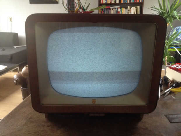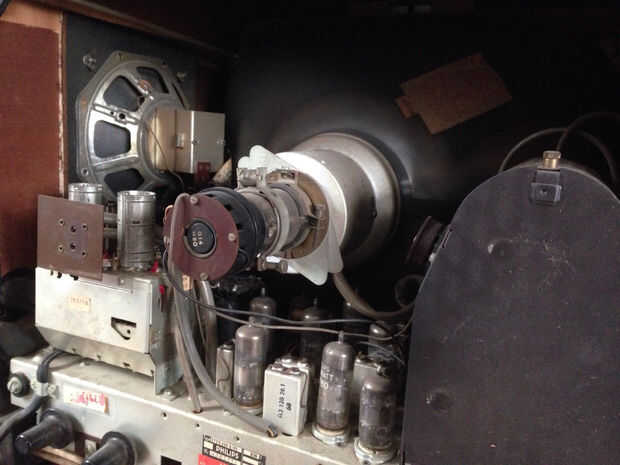 Decidí usar al Philips primero. Es un televisor Philips hecho en 1958, número de modelo 17TX 210 A/03. Realmente tiene electrónica con 'Made in Holanda' en ellos. Creo que es bastante salvaje, ya que todo hoy en día se realiza en Asia :-)