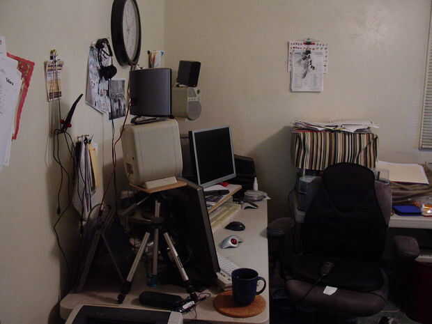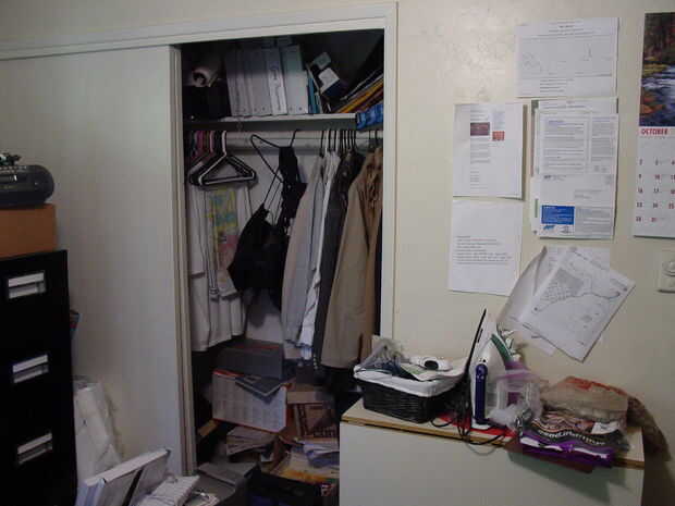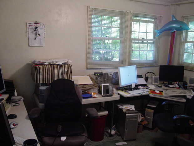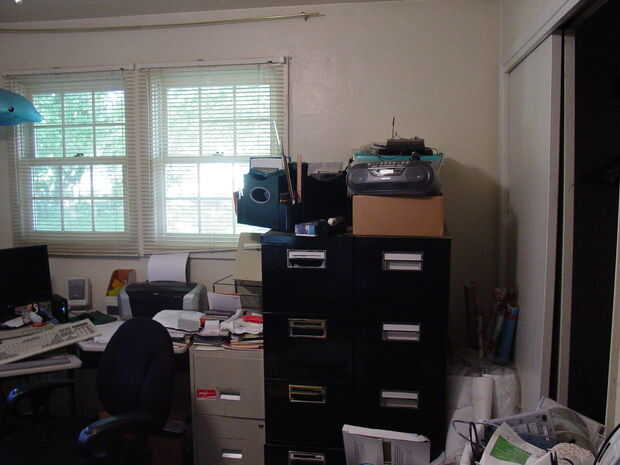 No empezó así. Cuando nos mudamos hace 9 años, colocamos cuidadosamente el 'Pupitres', entonces los equipos. Con los años, hemos añadido (también) muchas más computadoras y demasiados montones de papel. Y esas cosas. Y más cosas. Y no hay manera de dominar la materia.