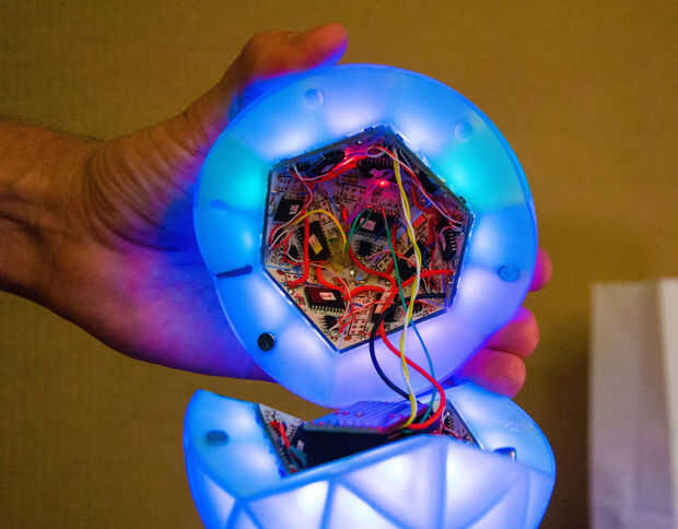 Este Instructable habla acerca de la electrónica y la programación de la pantalla esférica Ommatid. Se llama el Ommatid después de Ommatidia, el ojo compuesto de insectos se inspira en. Usted puede leer acerca de la construcción física del globo y con base en Ommatid: construcción de la caja.