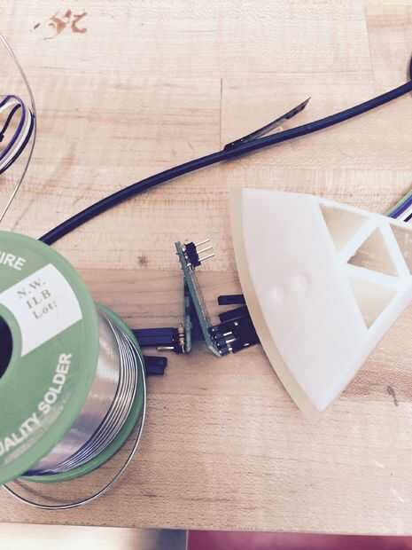 En orden al sentido táctil en la parte exterior de la esfera, he elegido usar un detector infrarrojo. En principio esto es simple: un poderoso IR led brillo a cada faceta, y un fotodiodo sensible detecta la luz reflejada de su mano. En la práctica fue un poco más complicado: porque la resina en el mundo no es perfectamente transparente de la luz se pierde en el camino y la forma en, y algunos se refleja internamente. Además de las lámparas incandescentes comunes y sensores de movimiento son fuentes de luz infrarroja que puede engañar el sensor.