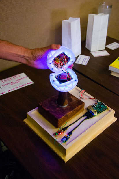 Todavía tengo mucho trabajo que hacer en la programación e interactividad: ahora el Ommatid está ejecutando un programa glorioso escrito en Python. En el futuro estará poniendo la consulta de sensor y LED generación código en procesos separados para mejorar la latencia y podría poner la parte superior y esferas de fondo en separan autobuses de RS-485 a doble rendimiento. También tengo ideas valientes (y algunos avances en la simulación) de detección más sofisticados gestos como pellizcar y globo-que hace girar (para trackball-como respuesta) así como mediante el gráfico de conexión para simular patrones reactivos. Si puedo calcular el Laplaciano de la malla triangular, puedo simular la ecuación de onda y los patrones de reacción difusión en respuesta al tacto. También me gustaría investigar haciendo el Ommatid generar eventos de OSC por lo que puede ser utilizado como regulador de la musical. Imaginar una actuación donde Ableton es controlada con un Ommatid en lugar de un ordenador portátil!