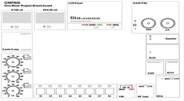 La elección de lo que ha sido añadido a la placa vino de lo que tenia en mis cajones de piezas. Tengo bastantes vúmetros analógicos que quería usar, así que decidió incluir un centro de cero y un medidor de VU regular. Tenía un módulo LCD extra que sería útil para tener. Un viejo transformador basado en fuente de alimentación de una fuente que genera 5, 12-0-12V que sería útil incluir. Además de una fuente de alimentación variable basado en un módulo de ebay que conectaría a otra fuente de 32V la verruga de la pared de un escáner de la impresora de HP. Y luego por supuesto los potenciómetros, interruptores y conectores que son difíciles para la interfaz de un protoboard. Y por supuesto la placa sin soldadura. Un componente fundamental que tenía que comprar de ebay eran las tomas de Rúbrica femenina frágil. Estos conectar a los diferentes componentes y permiten los cables para conectarse en y hacia fuera.