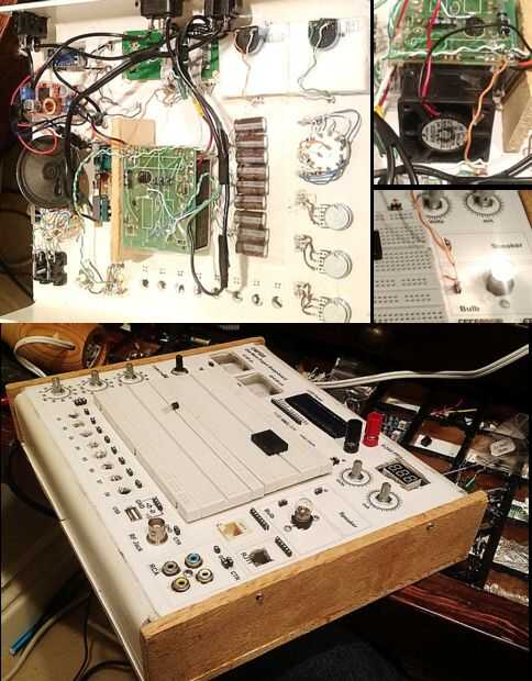 Los cables con cinta para organizar las aves anidan. También ha añadido un ventilador de la fuente de alimentación. Probado todas las conexiones con un ohmímetro y las fuentes de alimentación con el voltímetro. Atornillar la parte inferior del panel superior. Gris mayor cableado tuercas como las perillas.