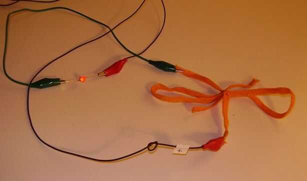 Ahora atar los dos extremos con un arco. La electricidad fluye a través de la proa y dé vuelta al circuito! Para apagar su dispositivo, simplemente deshacer el nudo.