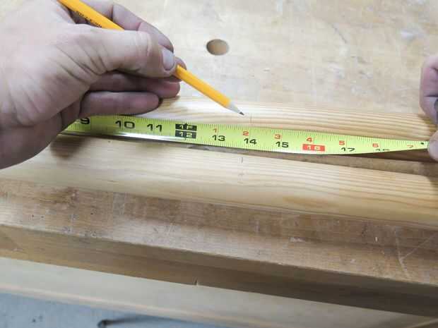 Para agregar la admite, en primer lugar medir el radio de la rueda de la bici. En nuestro caso, el radio es ~ 11" por lo que si recortamos nuestros soportes en 14" vamos a tener algunos abrir espacio en la parte posterior. Mida y corte la admite a la longitud adecuada.