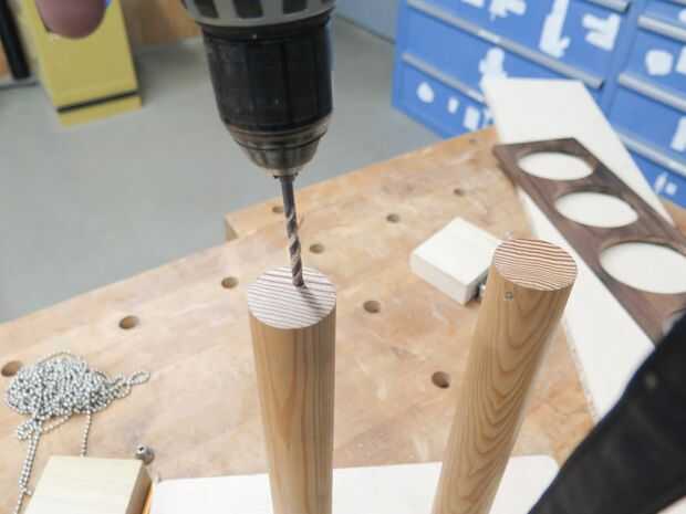 Al final, atornille un gancho del ojo directamente entre los dos postes. Si usted necesita, usted puede poner una tuerca en la parte trasera para sostenerlo en lugar. Este gancho de ojo actuará como una guía para nuestra cadena que gira.